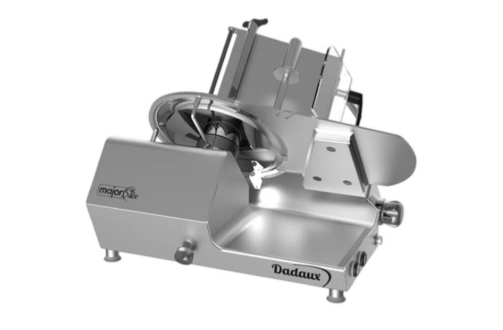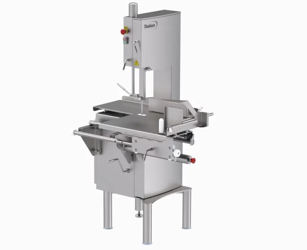 Entièrement Inox. Bâti forte épaisseur parfaitement rigide. Tendeur automatique de lame. Guide lame supérieur coulissant avec maintien en position automatique.